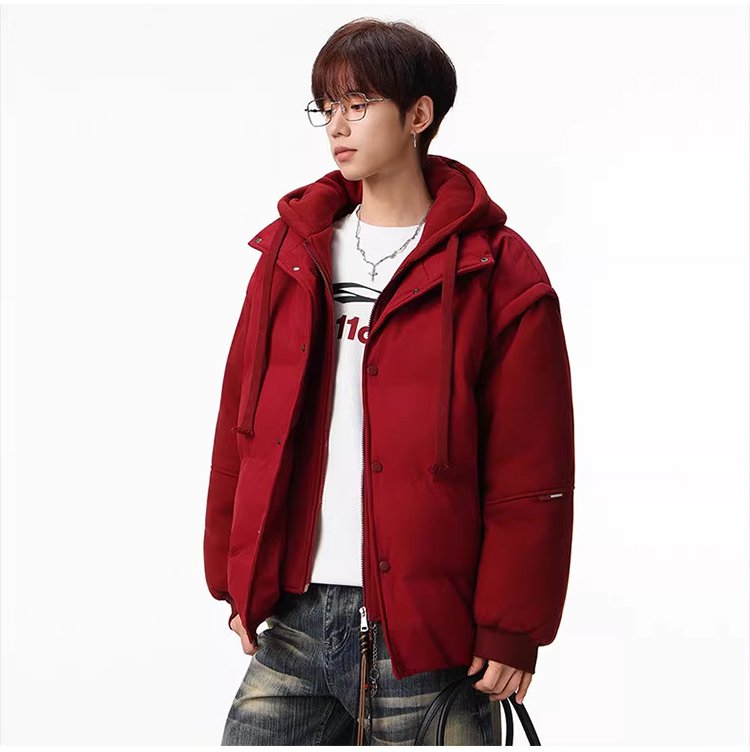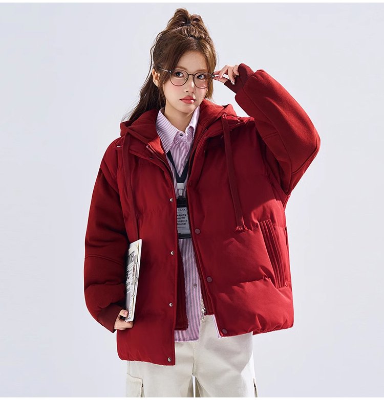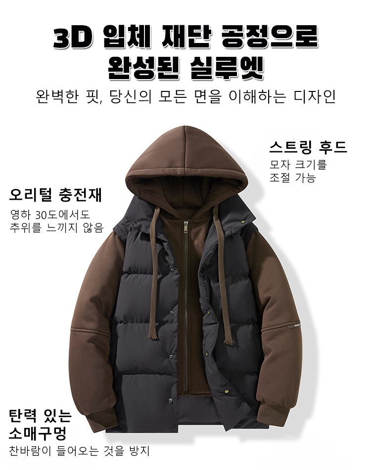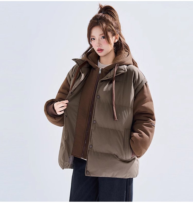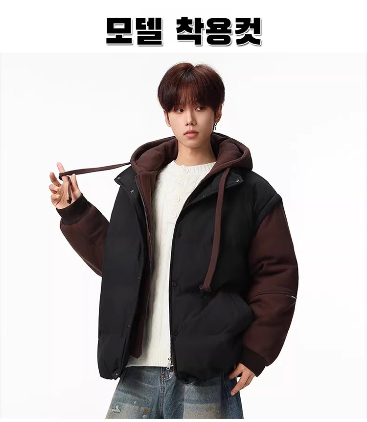 【커플용 동일 모델】두꺼운 레이어드 스타일 후드 다운 재킷